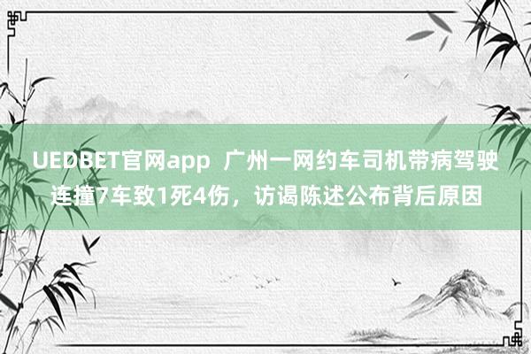 UEDBET官网app 广州一网约车司机带病驾驶连撞7车致1死4伤,访谒陈述公布背后原因