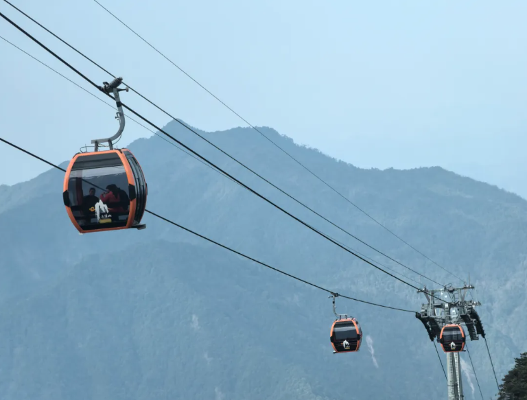 乘坐港首索说念,三清山的壮丽画卷在眼下缓缓铺展。吊厢沉着飞腾,下方是逶迤山路,上方是嶙峋峰林。这条地处三清山北部港首旅游行状区的索说念,下站设于上汾水村,上站距中枢景点三清宫仅约15分钟路程,竣事了北部行状区与中枢游览区的快速衔尾。