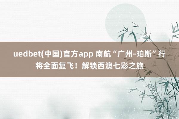 uedbet(中国)官方app 南航“广州-珀斯”行将全面复飞!解锁西澳七彩之旅