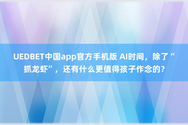 UEDBET中国app官方手机版 AI时间,除了“抓龙虾”,还有什么更值得孩子作念的?